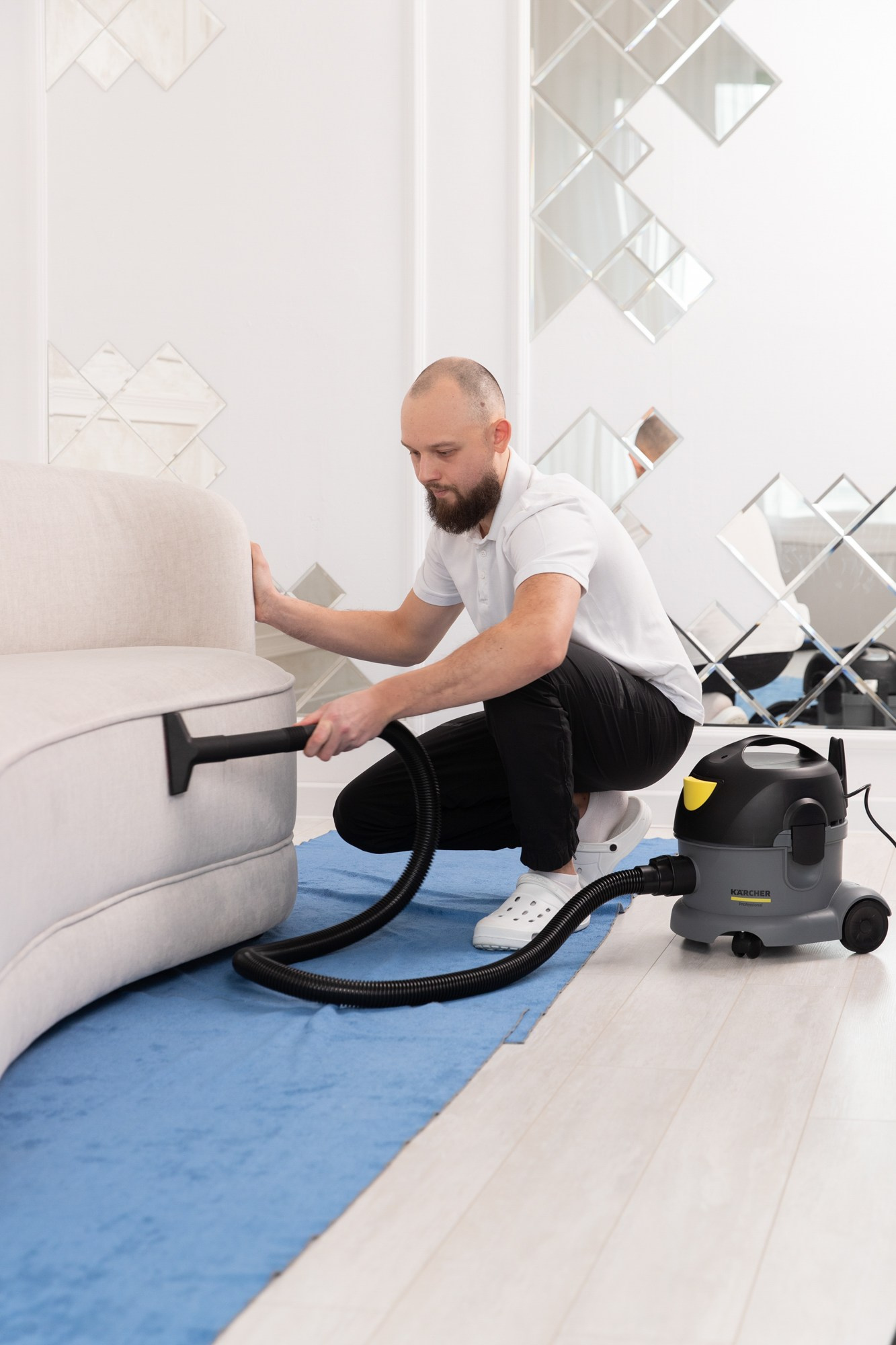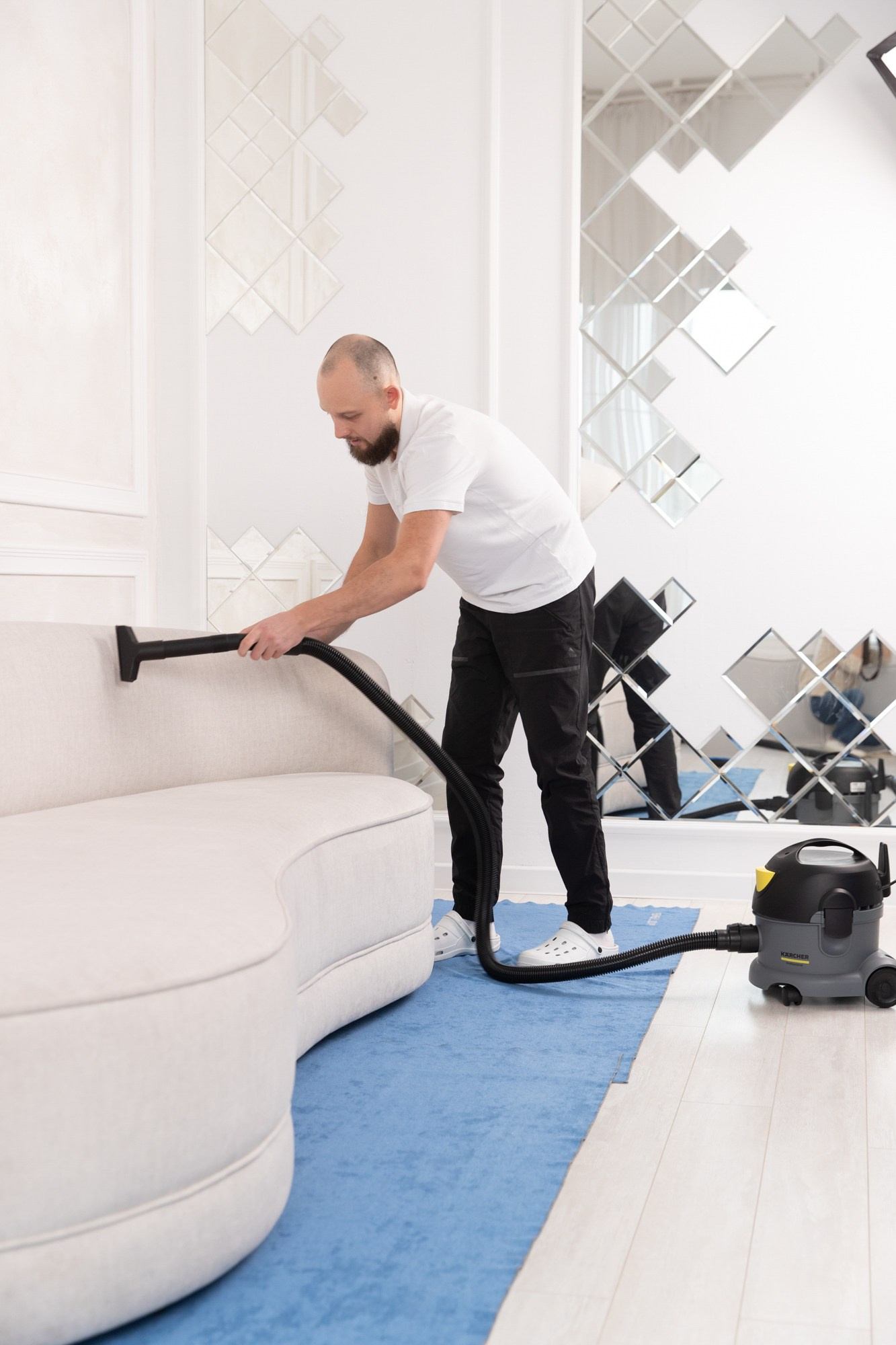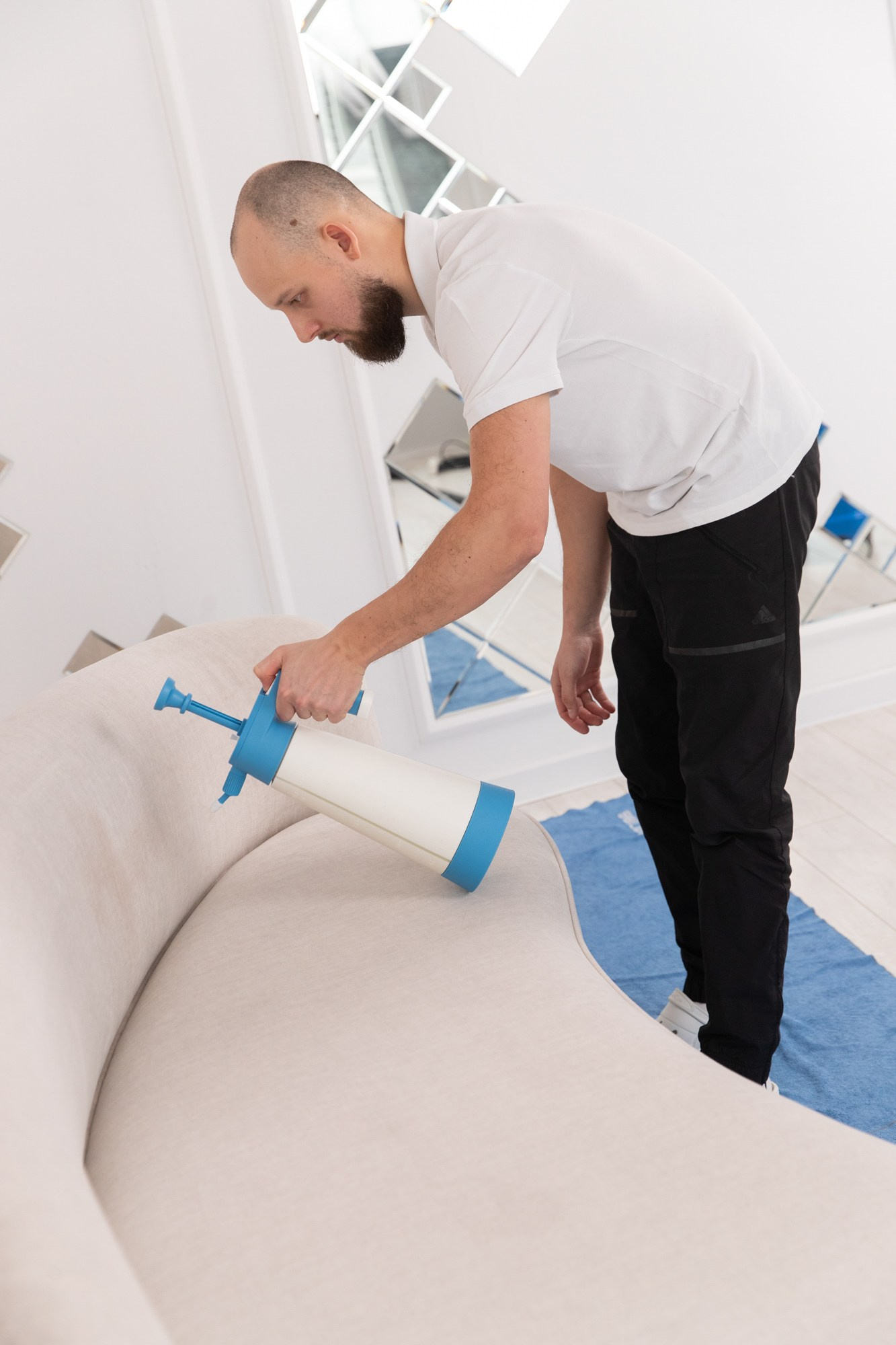 Профессиональный клининг в моей фотостудии частый гость. Для меня чистота и порядок в залах принципиальный и важный момент. В очередной визит клининга для химчистки нашей мебели договорились сделать паралельно фото и видео. Все фото (а их большое количество всего процесса) сделаны во время работы, без постановки. Единственное, заранее поставили мебель так, чтобы было удобно работать мне и ребятам.